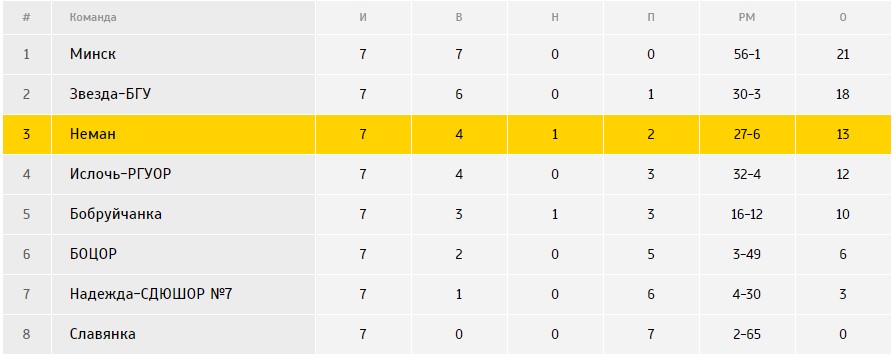 После первого круга наша команда расположилась на третьем месте, на одно очко опережая минскую «Ислочь-РГУОР». В ближайшем туре наша команда отправится в Брест, где уже 1 июня матчем с местным БОЦОР начнёт второй круг чемпионата.