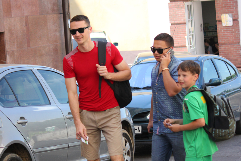 Сегодня, сразу же после очередной своей тренировки, наши юные футболисты с огромным удовольствием направились в центр города. Перед ними была поставлена серьёзная задача - вручить улыбчивым и приветливым гродненцам приглашение на завтрашнюю игру нашей главной команды против жодинских торпедовцев.
