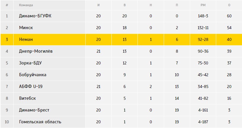 Диспозиция перед встречей (полная таблица): «Неман» – 3 место (40 очков, 92-28), «Динамо-Брест» – 9 место (3 очка, 4-161).
