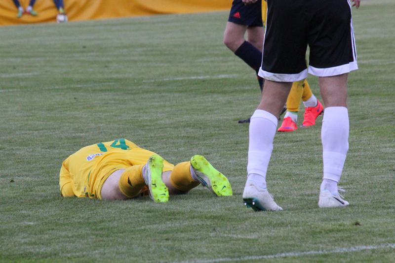 На 73-й минуте матча «Неман» – «Торпедо-БелАЗ» защитник гродненской команды Александр Анюкевич получил травму. Единоборство с Вячеславом Глебом завершилось неудачным падением нашего защитника.