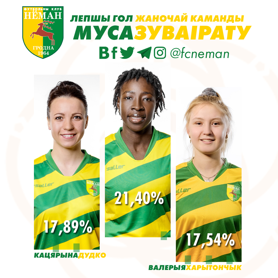 По итогам голосования лучшим голом женской команды в сезоне 2020 года признан гол в исполнении Муссы Зуваирату, который принёс важные три очка в борьбе за бронзу в матче с минской «Зоркай-БДУ» (21,40%).