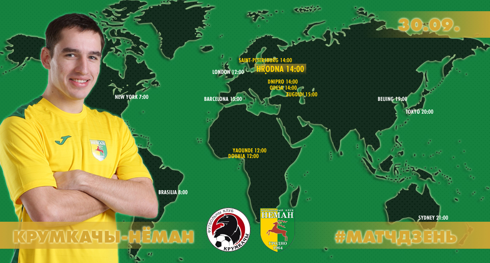 Матч 23-го тура Беларусбанк – чемпионата между командами «Крумкачы» – «Неман» состоится в субботу, 30 сентября. Матч пройдёт на стадіоне ФК «Минск». Стоимость билета – 4-7 рублей. Начало встречи в 14:00.
