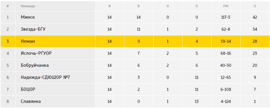 В розыгрыше кубка страны минчанки дважды переиграли нашу команду с одинаковым счётом 3:1, а вот в чемпионате обе встречи завершились в пользу «Немана». В матче первого круга жёлто-зелёные в гостях обыграли соперника со счётом 2:1 (голы забили Екатерина Дудко и Татьяна Кенда),